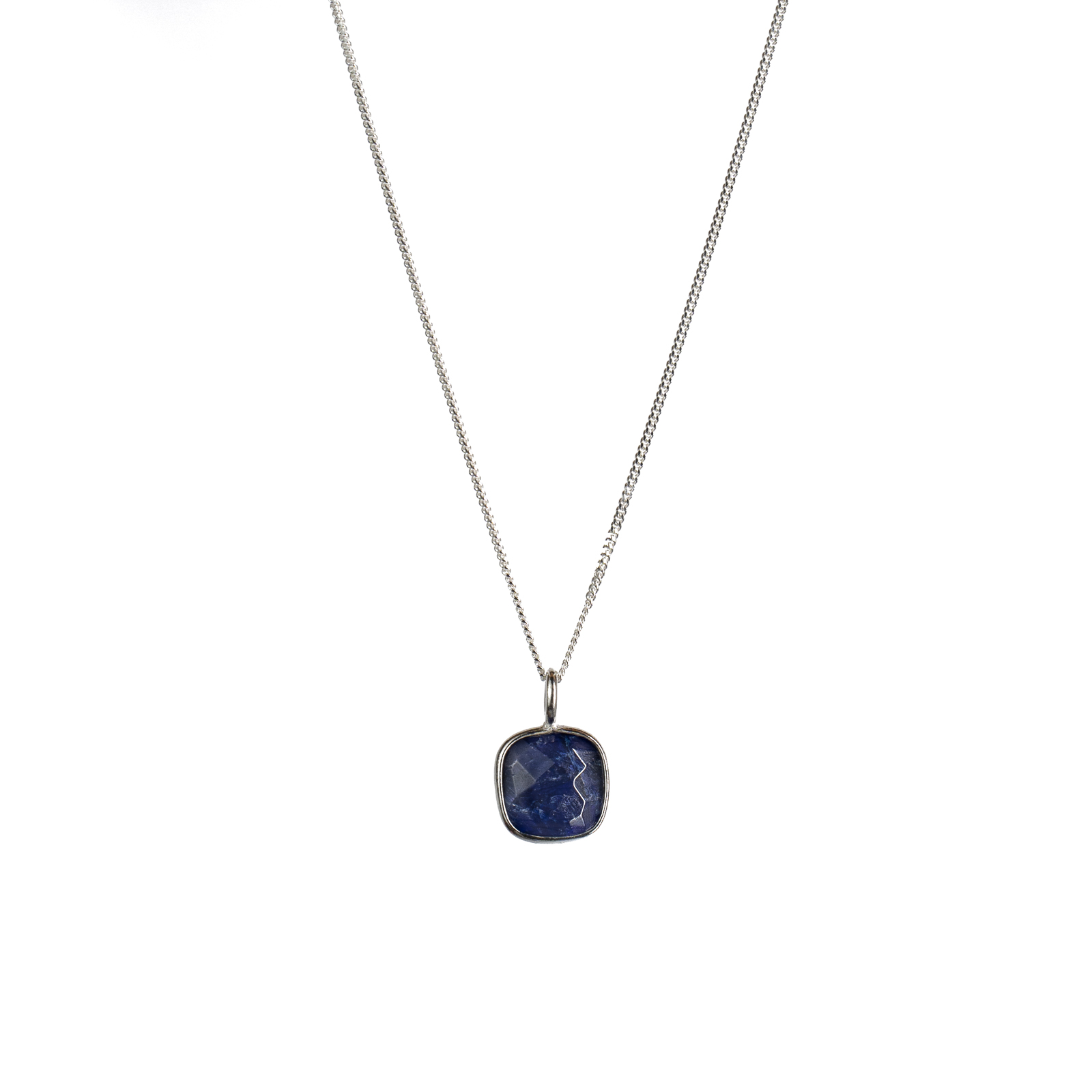 Gorgeous raw sapphire necklace with a sterling silver outline.